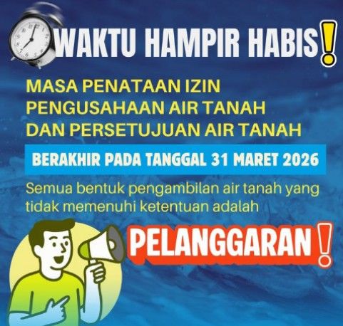 Ingat! Izin Pengusahaan dan Persetujuan Air Tanah berakhir 31 Maret 2026
